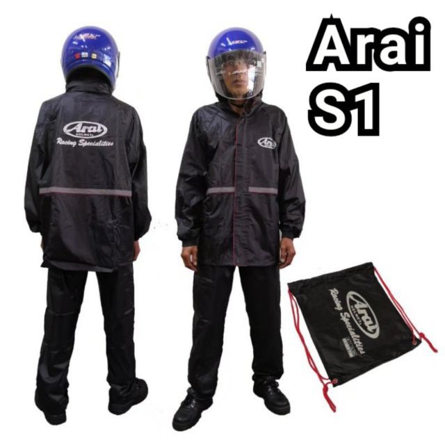 Only show arai helmet. All arai helmets are manufactured by hand and formed around protection first and foremost. ARAI R3 RAIN COAT BAJU HUJAN ARAI 2 LAYER WATERPROOF PREMIUM QUALITY RAINCOAT SPORT S - 4XL Similar.